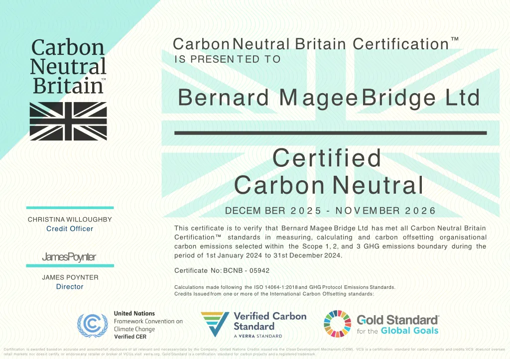 We have teamed up with Carbon Neutral Britain to offset our Carbon Footprint for 2024, and we are delighted to announce that as of December 2025 we are a certified Carbon Neutral Business!